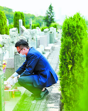 今年清明節(jié)期間,楊勇進(jìn)已完成近40次代祭掃服務(wù),代替逝者家屬鞠躬近160次……“不過,代祭掃服務(wù)一般只在清明期間提供,我的日常工作主要是負(fù)責(zé)福澤園的靈堂業(yè)務(wù)、墓園安葬等?!睏钣逻M(jìn)解釋道。