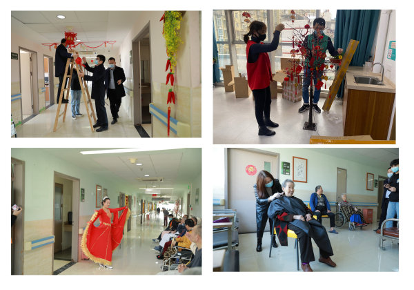 22日,社工中心奔赴蓮花愛(ài)心護(hù)理院和翔安長(zhǎng)壽村老人公寓兩家養(yǎng)老院,不僅協(xié)助兩家養(yǎng)老院開(kāi)展新春布置活動(dòng),也為兩家養(yǎng)老院的老人帶去了精彩的新疆舞蹈秀以及免費(fèi)理發(fā)服務(wù)。兩家養(yǎng)老院在志愿者的巧手裝扮下,被大紅燈籠、喜慶的中國(guó)結(jié)、大氣的“?!弊帧⑵恋睦▕y點(diǎn)的溫情四溢,到處都彌漫著幸福溫馨的新年氣息。
