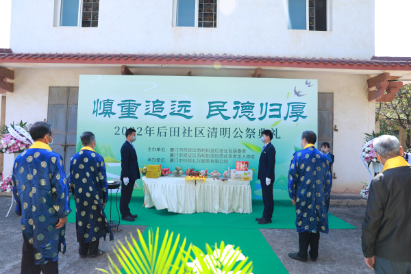 3月27日, 廈門市應(yīng)對新冠肺炎疫情工作指揮部發(fā)布〔2022〕第5號通告要求清明節(jié)期間,暫?,F(xiàn)場祭掃活動(dòng)。后田社區(qū)居委會和后田社區(qū)老年協(xié)會積極響應(yīng)政府號召,周密謀劃,精準(zhǔn)部署疫情防控和安全祭掃工作;將疫情防控的壓力轉(zhuǎn)化為創(chuàng)新服務(wù)的動(dòng)力,攜手廈門懷祥禮儀為安葬在后田社區(qū)骨灰樓內(nèi)的先人舉辦一場公祭典禮,既滿足居民祭奠先人,傳遞哀思的愿望,又避免清明期間因集中祭掃引發(fā)輸入性和聚集性疫情。