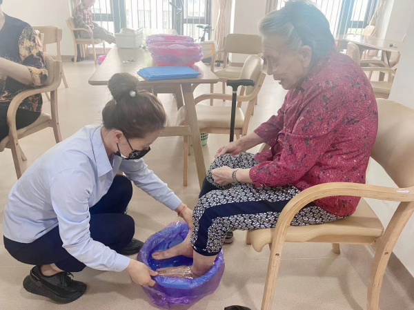 廈門福壽康寧社工服務中心志愿者為老人開展足部護理