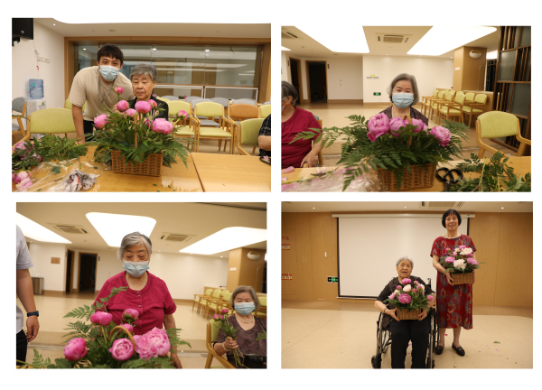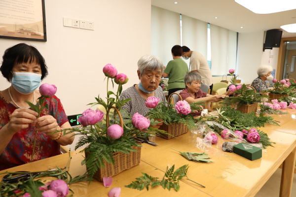 隨著老人們巧手翻飛,一盆盆美麗別致、凝聚著大家智慧巧思的插花盆景擺上了桌面。幾位老人面帶笑容,讓護(hù)士幫忙用手機(jī)拍照留念,大家看著自己的美好作品,心情也跟著變得美麗起來(lái),公益插花活動(dòng)也在一片芳香中圓滿結(jié)束。