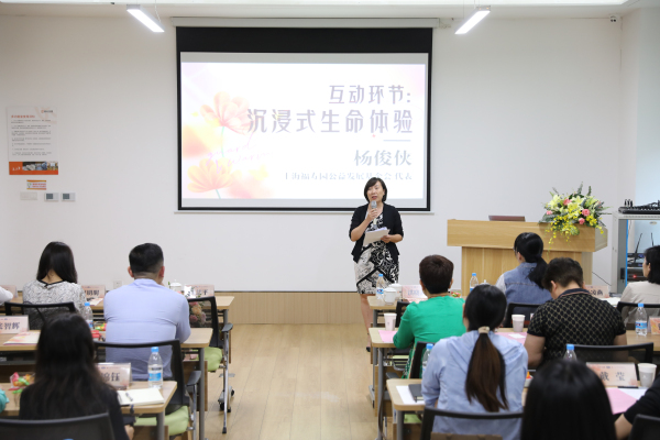 上海福壽園公益發(fā)展基金會社工部總監(jiān)兼安寧療護項目負責人楊俊俠代表主辦方上臺致辭
